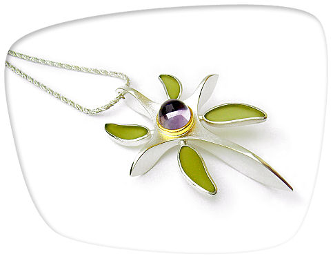 925/- Silber, 900/- Gold, Amethyst, Flaschenglas